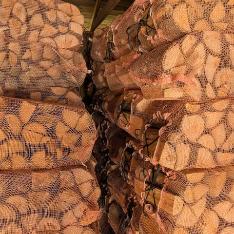 Tørr og fin bjørk. 40 liter. Sekkene kan leveres for kr 100 i Færder og Tønsberg område.