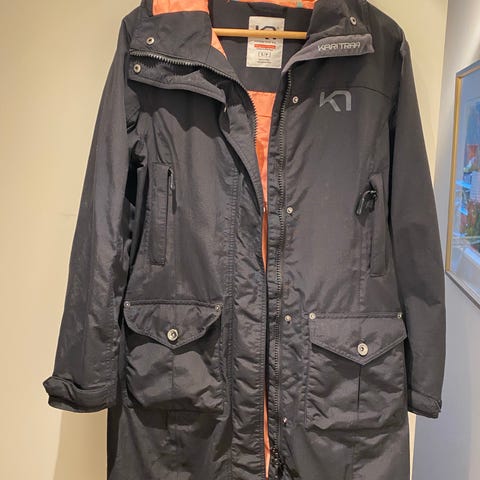 Parkas med løst for fra Kari Traa. Godt brukt, men mye bruk igjen. Mangler knapp for å feste foret i den ene armen og litt misfarging i foret, men ellers ingen skader. Kan trenge litt ny impregnering, men fortsatt god alværsjakke. God og tett hette og fin og smal passform. Selger fordi den er blitt for liten. Gode lommer.