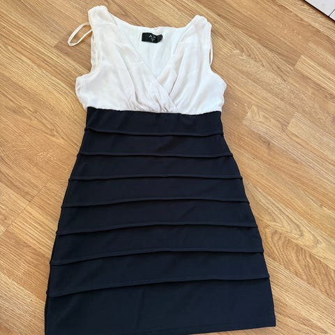 Kjempefin kjole str XS. Svart bunn med blomstermønster. Stødig stoff. Glidelås i ryggen. Sendes gjerne med Fiks Ferdig.