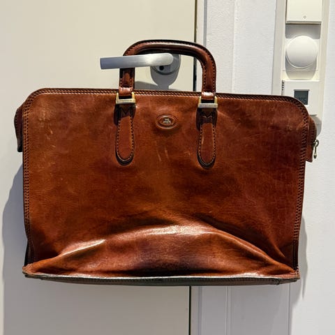 The Bridge skinnveske for dokumenter, PC. Lyst brunt skinn, italia Firenze. I svært god stand. Selges til høystbydende