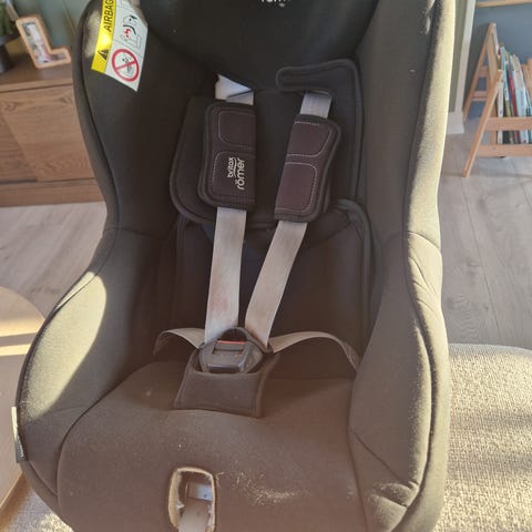 Bildene viser at isoporen er hel og uten skader. Aldri vært i kollisjon. Vi er veldig fornøyd med bilstolen selv. Ikke isofix - monteres med belter. Nyvasket trekk!
