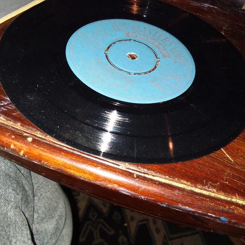 The non-playing side has a holographic centre, and the centre of the other side is a picture disc.