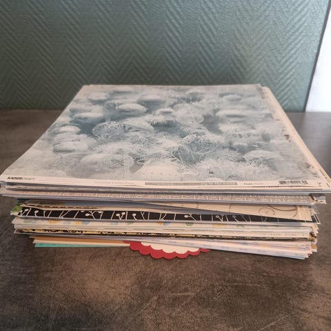 Papir holder for ark i størrelse 12 x 12". (30,5 x 30,5 cm) Utvides opptil 23 cm i ryggen, og har plass til over 800 pyntepapir.