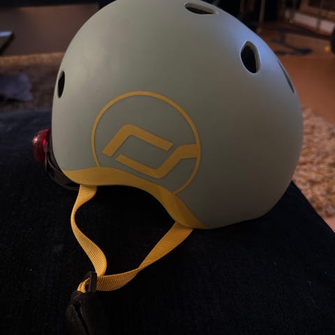 Brukt hjelm til Scoot and ride sparkesykkel selges. Str 45-51cm.