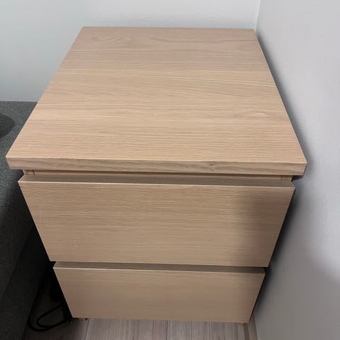 Eikfarget nattbord fra IKEA MALM serien selges