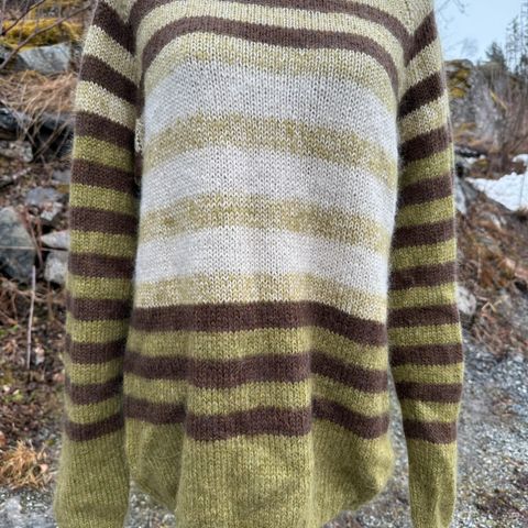 Nydelig strikkegenser, fin passform. Brukt ein gong, fargen vart feil for meg.