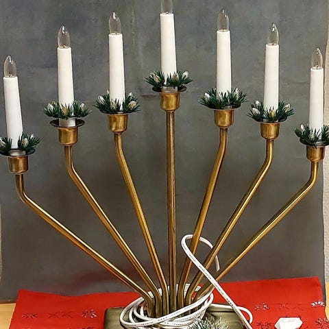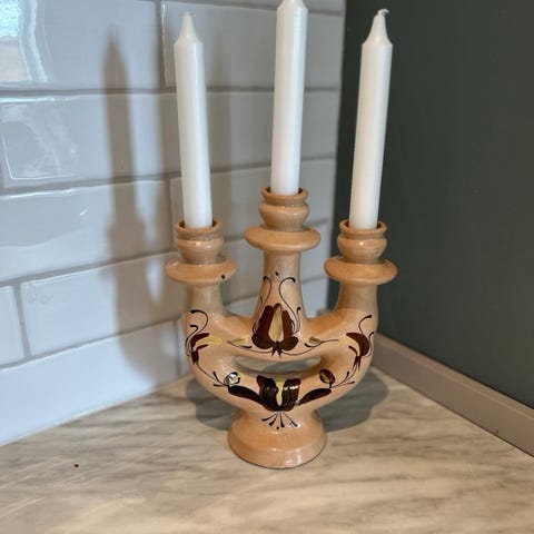 Søkeord: vintage, retro, dekor, unik, pynt, klassisk design, metall lysestake, gammel, stilrent, borddekking, kandelaber, lys,