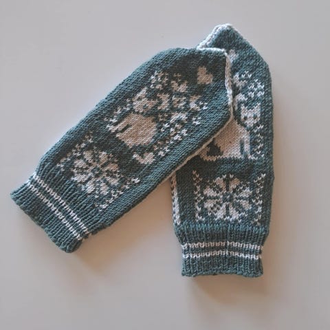 🌜Deilige votter med reinsdyr i måneskinn🌛. XL dame eller herre votter.