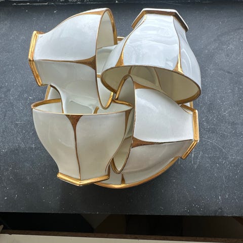 5 tynne porselenskopper med skåler