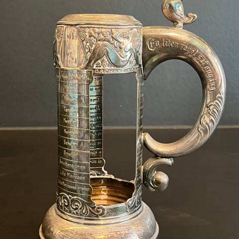 Vintage ølkrus i tre – med utskiftbart glass og vikingmotiv