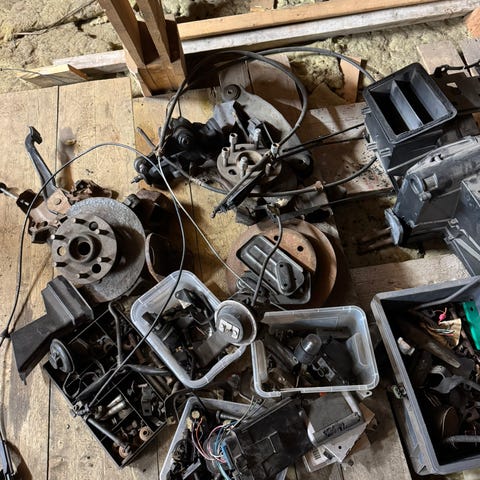 Selger div. deler som jeg har til overs. Begge reimhjulene ,bunnpanne og pick up er solgt