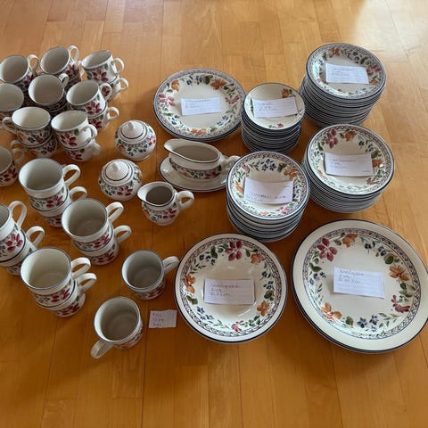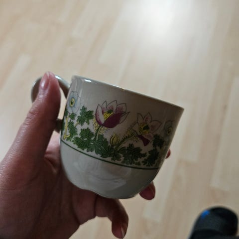 5 kaffekopper og tefat
