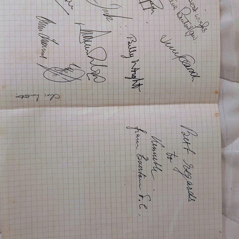 Stor autografsamling av fotballspillere og trenere.