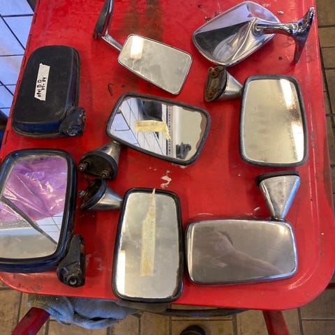 Speil holder, med pakning, et buet glass og et rett, helt og fint.