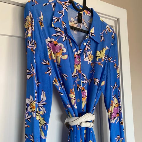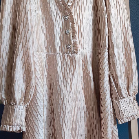 Nydelig gylden kjole med dekorative knapper fra YAS. Den er størrelse XS, men passer fint til meg som er en stor S. Den har en underkjole som gjør at den sitter ekstra pent. Ny pris var 1 145 kr.