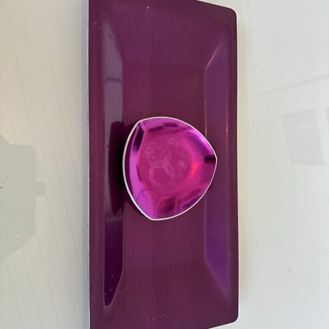 Pent emaljert metallfat, dette knuses ikke :-) Fint retrofat. 26,5cm Ø, 3,5 cm høyt