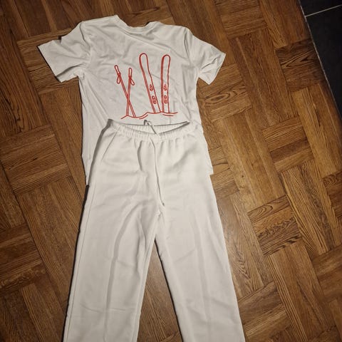 Hvit overtrekksbukse / joggebukse / treningsbukse med glidelåslommer.