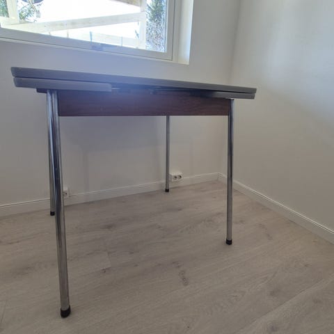 Pent brukt lekkert spisebord med toff glass benk som er avtagbart. Lengde 110cm, dybde 75cm, høyde 72cm.