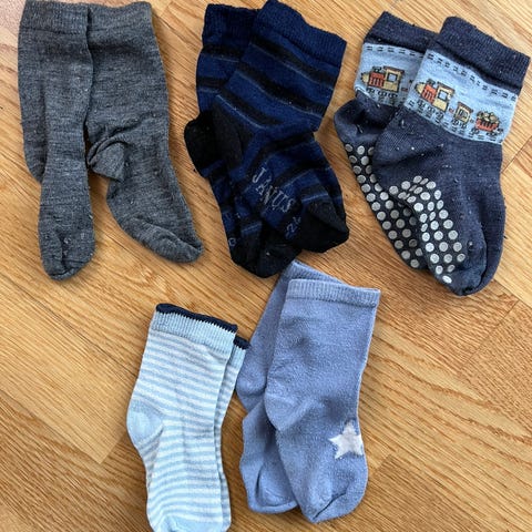 Selger div sokker: både i bomull og ull. Brukte og helt nye. Passer fra 1 1/2 år og opptil ca 3/4 år
