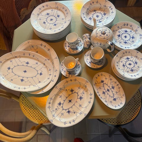 Royal Copenhagen hvit riflet str 22 cm - 10 stk