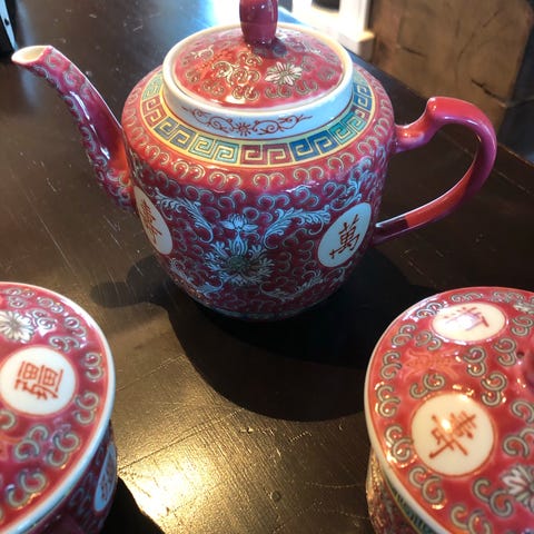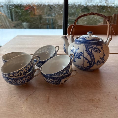 Overflatekrakkelering på te-kanne (se bilde), men ellers uten skader.