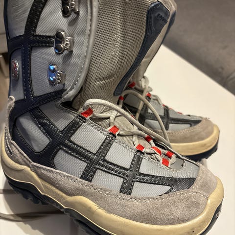 Snowboard støvler selges. Sort/hvit/rød m snøring.
