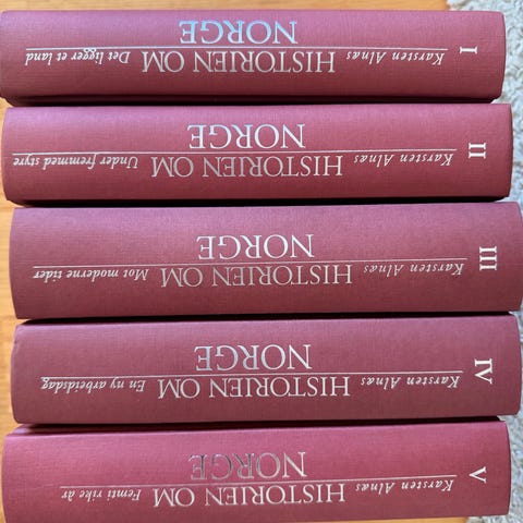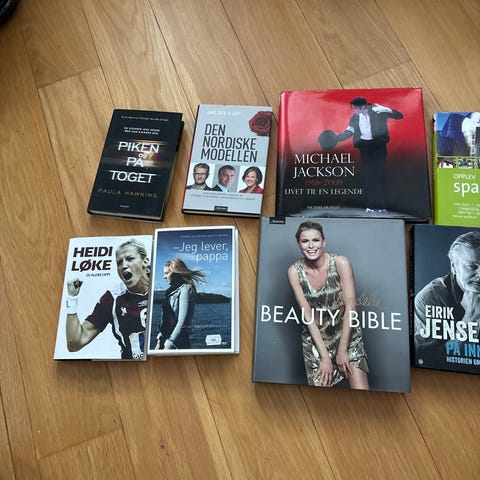 Flotte bøker, de fleste ikke lest eller bladd i.