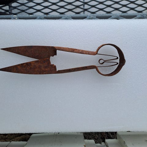 Gammel sauesaks. Årstall ukjent, tipper den er veldig gammel pga utformingen. . Vellaget og fortsatt skarp. 25 cm lang.