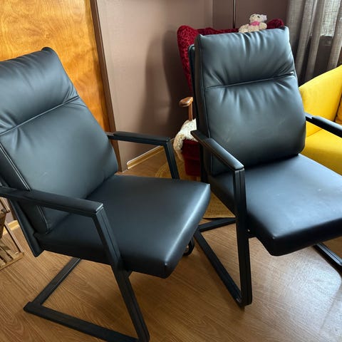 2 stk lenestoler i svart skinn.