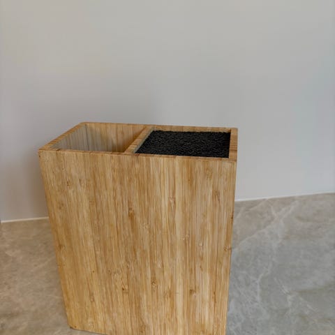 Massiv knivblokk med plass til 5 kjøkkenkniver. Stødig og i god stand.