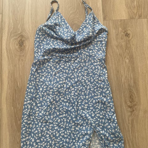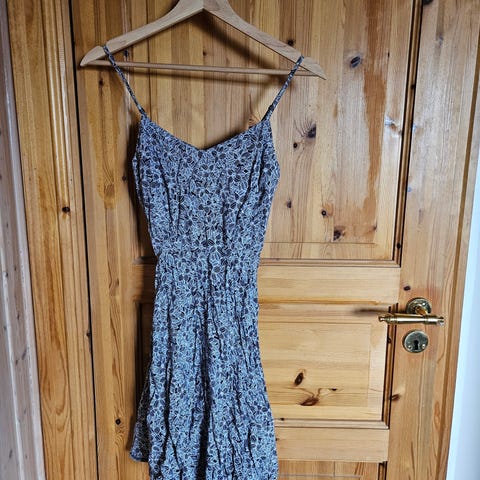 Skjørt og topp fra Gestuz. Ser ut som en kjole når man bruker det sammen. Kan også brukes hver for seg. Pent brukt. Mønsteret heter clover. Resirkulert materiale. Str. 34 (xs), men stor i størrelsen. Jeg bruker til vanlig str. 36/S. Toppen har regulerbare stropper og skjørtet har strikk i livet.