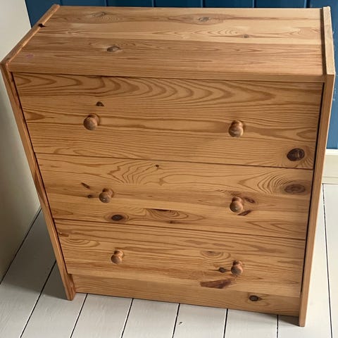 Selger en funksjonell og romslig oppbevaringskommode i god stand. Perfekt for å organisere klær, sengetøy eller annet til hjemmet.