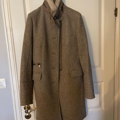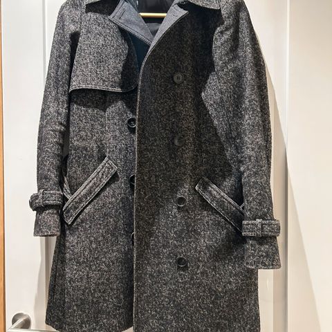 Flott kåpe fra Zara, knapt brukt. Grå, litt svart i sømmer. Lommer på forside. 50 % ull.
