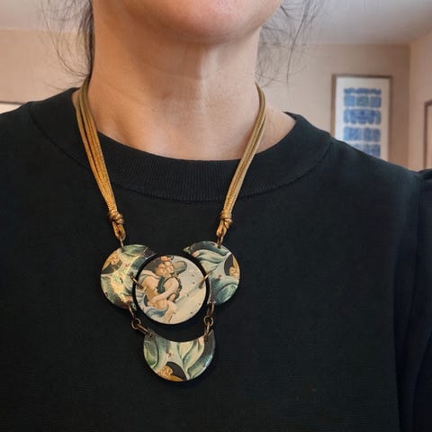 Selger 1 stk vintage armbånd kjøpt i Frankrike på begynnelsen av 2000-tallet. Med strikk (god elastisk). Dekorert med kuller/ringer i forskjellige str. B på armbånd i "åpenningen" er rundt 5,8 cm.