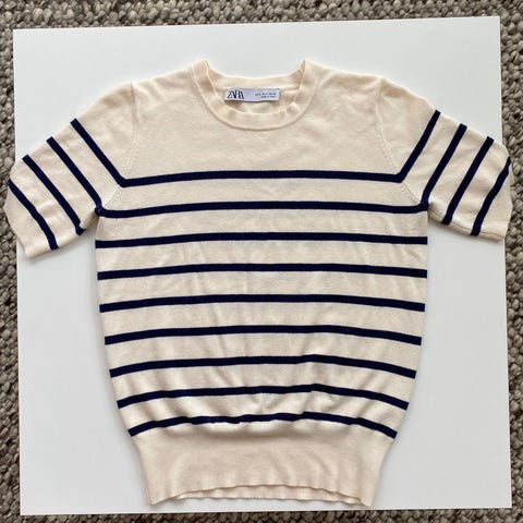 Superfin hvit topp med neonrosa striper. Toppen er pent brukt, og er størrelse S. Materiale: 100% polyester. Jeg sender stort sett alltid første virkedag etter mottatt penger for frakt :)