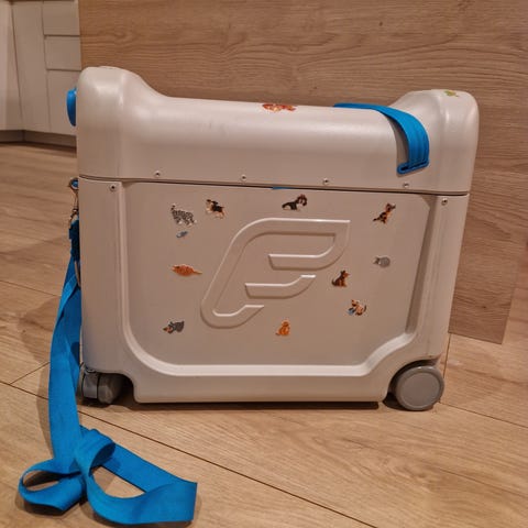 Denne kofferten gjør reisen med små barn litt enklere. Det er transport og underholdning på flyplassen, oppbevaring av diverse leker og tegnehefter, samt bord/seteforlenger. Leies ut på ukesbasis.