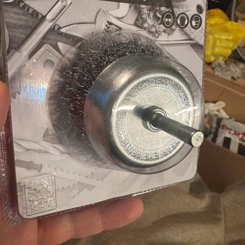 Stålbørste med gjenget M14-feste for vinkelsliper. Lite brukt.