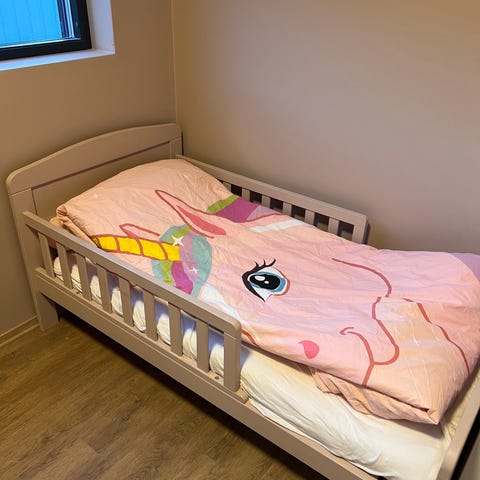 Sengen er skudd fra hverandre. Dyne og pute følger ikke med.