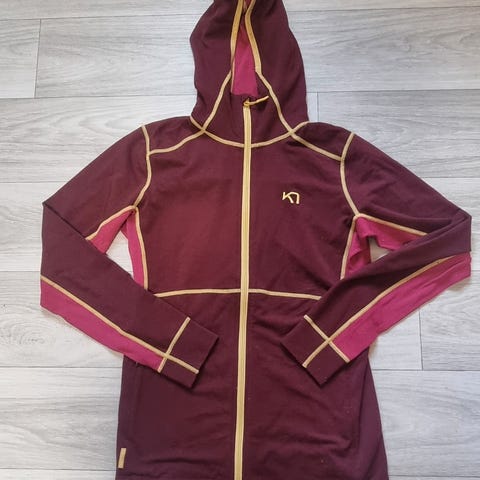 Myk og varm ulljakke fra Johaug. Kommer i sidene og hette. Strikk bak i ryggen som gir en flatterende passform. Brukt en gang- fremstår som ny. Ny pris1499
