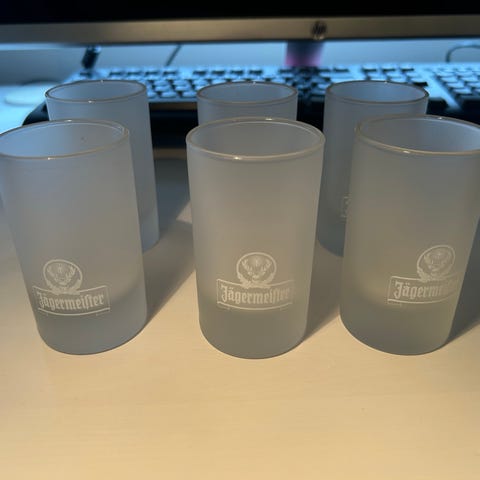 6 stk. Jägermeister glass 9 cm . Kr.80/stk