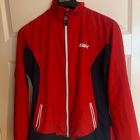 Rosa skijakke fra Swix med svarte detaljer. Brukt et par ganger i størrelse L.