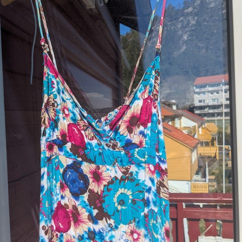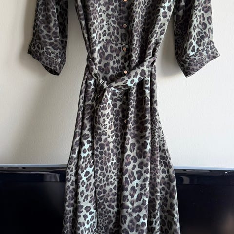 Lang ubrukt kjole i blå leopardmønster. Str S