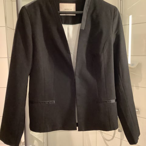 Selger en nydelig blazer fra Helmut Lang med skinn detaljer og skulderputer. Str XS. Den er nydelig og lett å ha på seg. Har ikke brukt med mange ganger så framstår som ny. Desverre litt for liten for meg