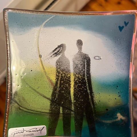 Glass skål laget av Gjertrud Karevoll, Voss.