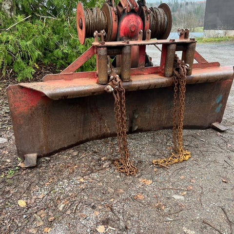 Wire og noen kjettinger følger med. Disse er godt brukte. Store tromler. Spaker er noe ombygget og det følger med 2 stk forlengere i aluminium. Det følger også med en kort pto-aksling.