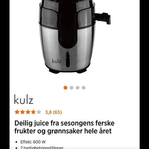 Kjøpt en juicer i sommer av 2024 men det ikke blir brukt så mye nå. Kraftig juicer fra kulz. Komt med esken