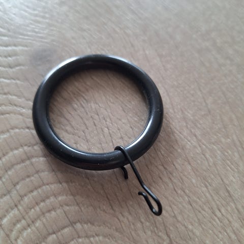10 svarte gardinringer, svart farge 3mm. Ubrukte. Nypris 99kr