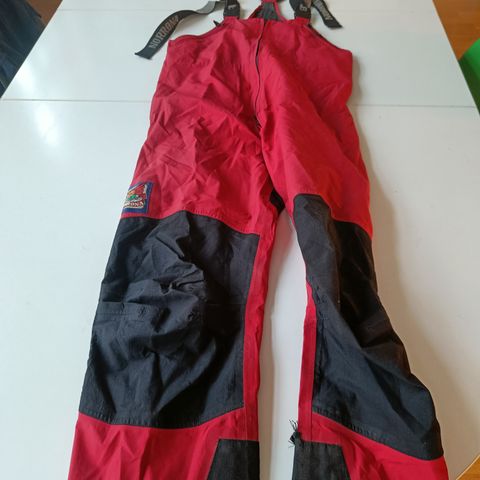 Buksemål: benlengde innside lår 75cm, total lengde foran 122cm, livvidde 33/34/large.