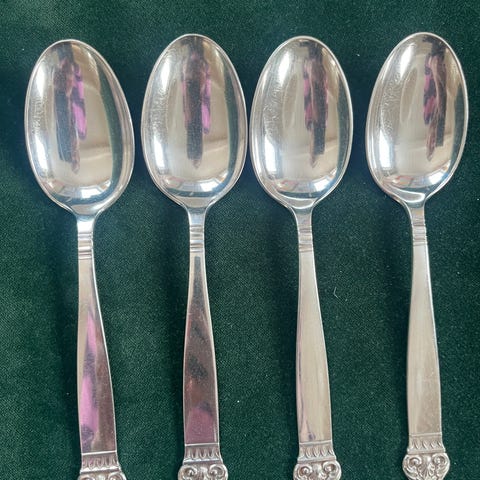 Sølvplett, muligens Moria. Alle er merket med 60 Gr. H.J. Trengs å pusses!
