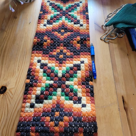 Påtegnet og påbegynt broderi til Setedalsgenser. Garn, mønster og monteringsbeskrivelse følger med. Porto kommer i tillegg v/sending.